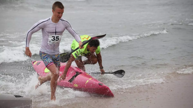 El tiempo no daba tregua y la lluvia hacia acto de presencia cada vez más fuerte. Los deportistas han realizado emocionantes eliminatorias en un recorrido de 400 metros, en las que los participantes dejaban la primera baliza a estribor para continuar hacia la segunda y la tercera paleando hacia la orilla en una más que trepidante llegada, dejando el surfski en la arena y continuando en carrera hasta la meta en un duro esprint.